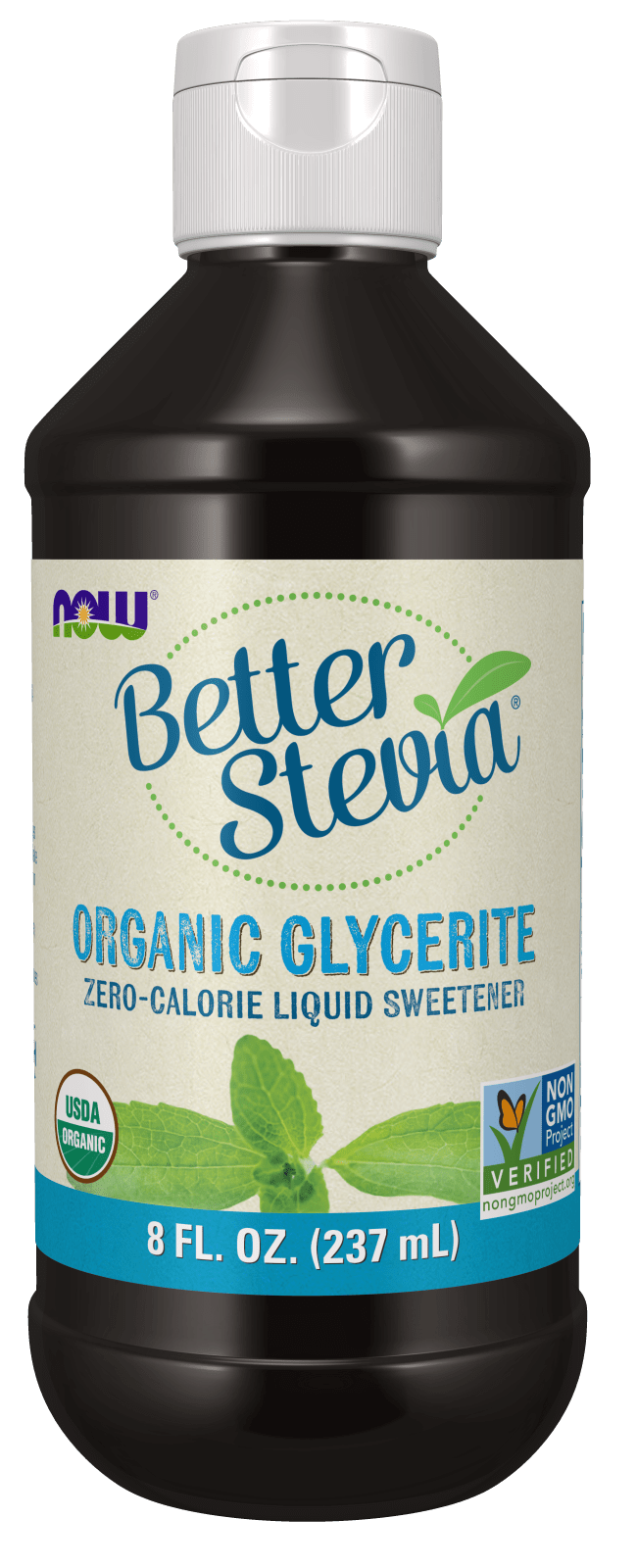 NOW® BetterStevia® Organic Glycerite is alcohol-free and a zero-calorie, low glycemic, plant based sweetener that makes a perfectly healthy substitute for table sugar and artificial sweeteners. Unlike chemical sweeteners, NOW® BetterStevia® Organic Glycerite contains natural plant Stevia extracts.